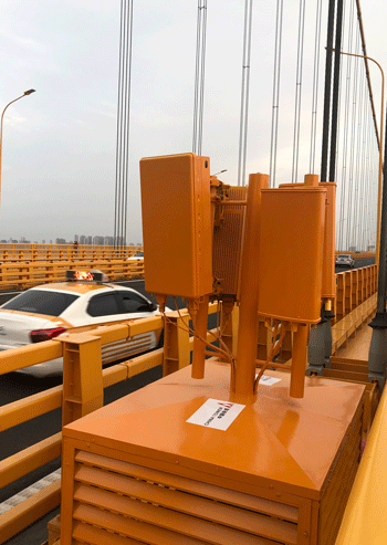 建站大橋上的基站,左側(cè)長(zhǎng)方形盒子是5G發(fā)射單元,右側(cè)長(zhǎng)方形盒子是4G發(fā)射單元