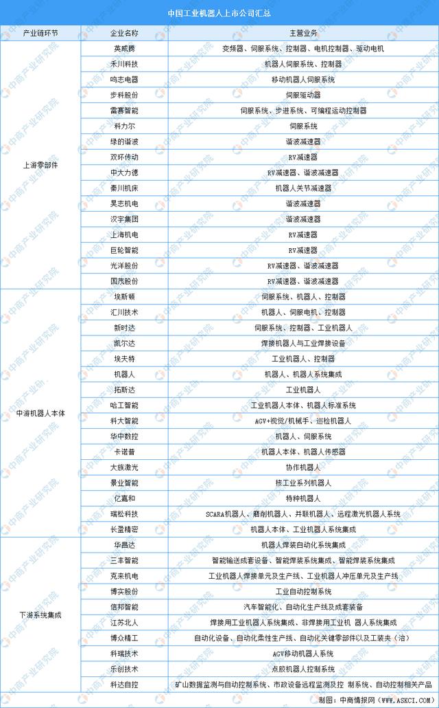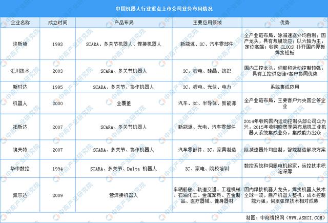 工業(yè)機(jī)器人行業(yè)重點(diǎn)上市公司業(yè)務(wù)布局