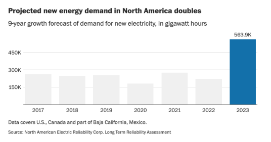 類似的事情正在整個美國上演,西北地區(qū)的俄勒岡州,波特蘭最近將未來五年新增電力需求的預(yù)測提高了一倍,稱數(shù)據(jù)中心和“快速工業(yè)增長”是驅(qū)動因素。