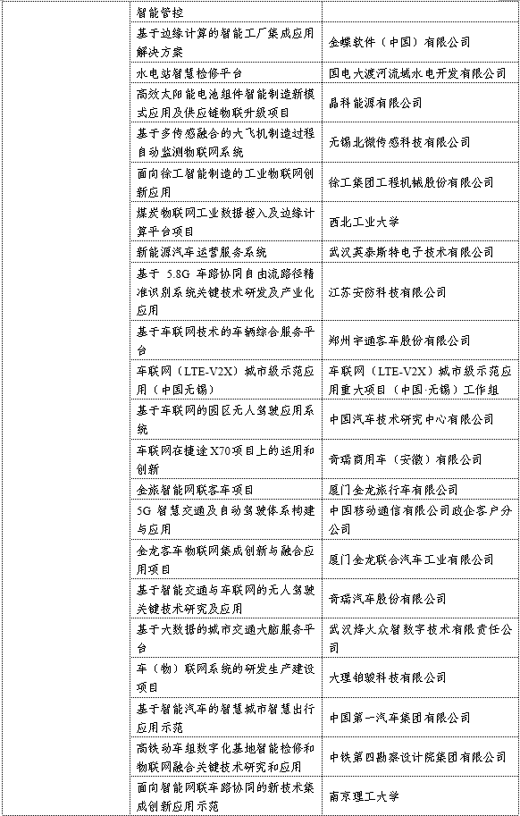 2018年物聯(lián)網(wǎng)集成創(chuàng)新與融合應(yīng)用項(xiàng)目名單