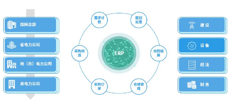 企業(yè)資源管理系統(tǒng)ERP(Enterprise Resource Planning,簡(jiǎn)稱ERP)著力實(shí)現(xiàn)“資源一盤棋”,通過與ECP、EIP等系統(tǒng)緊密集成,總部、省、市、縣縱向體系貫通,設(shè)備、經(jīng)法、財(cái)務(wù)等橫向?qū)I(yè)協(xié)同,實(shí)現(xiàn)采購(gòu)訂單、庫(kù)存物資、資金結(jié)算等企業(yè)資源統(tǒng)籌管控。該系統(tǒng)主要由計(jì)劃管理、合同管理、倉(cāng)儲(chǔ)管理和廢舊物資處置管理四個(gè)業(yè)務(wù)子模塊組成。
