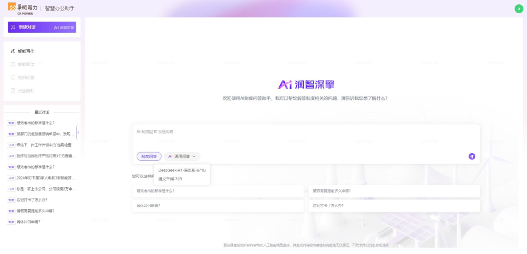 華潤(rùn)電力基于DeepSeek671B大模型的深度解析能力,對(duì)419份制度文件進(jìn)行結(jié)構(gòu)化處理,構(gòu)建制度知識(shí)庫(kù),初步實(shí)現(xiàn)制度問答功能驗(yàn)證。