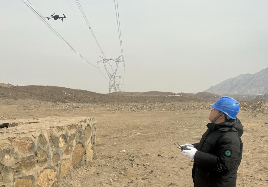 “伴隨著螺旋槳的嗡嗡聲,保電人員操控著無人機向著高處的導線飛去,細致排查線路運行情況”。3月3日,輸電管理處鄂爾多斯地區(qū)保電人員利用無人機對500千伏布烏雙回線、500千伏迪勒雙回線“三跨”塔段開展特巡,及時掌握線路狀態(tài)。為保障兩會期間線路可靠運行,輸電管理處詳細制定保供電方案和應急預案,全方位強化運維保障工作。從加強線路巡視入手,在烏海、鄂爾多斯、巴盟及阿拉善地區(qū)建立4支動態(tài)巡視小組共計58人、13臺保電車輛,針對24條輸電線路運用“人工+可視化+無人機”運維手段全線24小時不間斷巡視,保障重要電力通道安全穩(wěn)定。