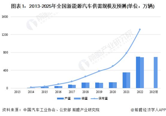 新能源汽車(chē)是我國(guó)應(yīng)對(duì)氣候變化、推動(dòng)綠色發(fā)展的戰(zhàn)略舉措,在政策和市場(chǎng)需求的推動(dòng)下,我國(guó)新能源汽車(chē)產(chǎn)銷(xiāo)量雙雙增長(zhǎng),2022年,全國(guó)新能源汽車(chē)實(shí)現(xiàn)產(chǎn)量705.8萬(wàn)輛、實(shí)現(xiàn)銷(xiāo)量688.7萬(wàn)輛;同時(shí),據(jù)公安部數(shù)據(jù)顯示,截至2022年末,全國(guó)新能源汽車(chē)保有量已達(dá)1310萬(wàn)輛,占汽車(chē)總量的4.10%。根據(jù)國(guó)務(wù)院印發(fā)的《新能源汽車(chē)產(chǎn)業(yè)發(fā)展規(guī)劃(2021-2035年)》,未來(lái)幾年我國(guó)新能源汽車(chē)行業(yè)仍將保持高速發(fā)展態(tài)勢(shì),至2025年,新能源汽車(chē)新車(chē)銷(xiāo)售量達(dá)到汽車(chē)新車(chē)銷(xiāo)售總量的20%左右,預(yù)計(jì)銷(xiāo)量將突破700萬(wàn)輛。
