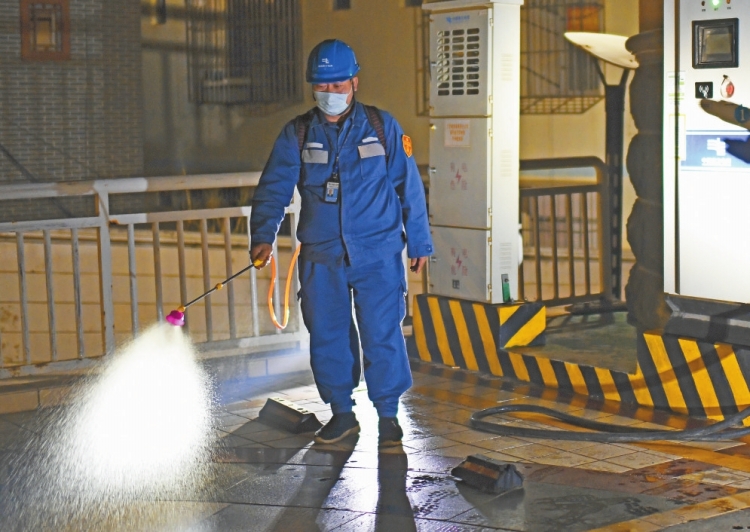 從2月2日晚上開始,廣西電網(wǎng)公司南寧邕寧供電局黨員服務隊每天組織3名黨員,在23時后對供電區(qū)域內的電動汽車充電站進行全面消毒,減少對用戶的影響,確保充電環(huán)境安全。馬華斌 攝