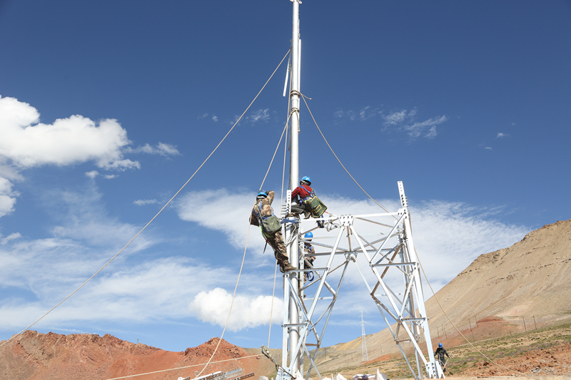 “目前我們完成了蘇里鄉(xiāng)98%的下戶線接入,剩下沒接入的用戶在轉(zhuǎn)場(chǎng)或者去了夏窩子。等他們一回來就能接入了。”工程項(xiàng)目負(fù)責(zé)人竇健說。在蘇里鄉(xiāng)組塔的施工階段,78~94號(hào)鐵塔最高,在4300米以上,塔材和石料全憑騾隊(duì)馱運(yùn)。施工高峰期時(shí)16匹騾子分成兩隊(duì),分別從央隆和蘇里雙向馱運(yùn)。眼下,鐵塔塔基澆筑已完成100%,已組立72基。