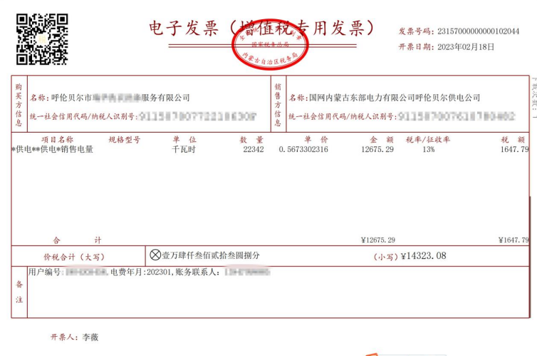 2月18日,國(guó)網(wǎng)呼倫貝爾供電公司西山供電營(yíng)業(yè)站李薇通過營(yíng)銷系統(tǒng)開具該公司電費(fèi)用戶首張電子專用發(fā)票,標(biāo)志著國(guó)網(wǎng)蒙東電力正式貫通數(shù)字化電子發(fā)票“業(yè)財(cái)稅票”數(shù)據(jù)鏈路,稅務(wù)數(shù)字化轉(zhuǎn)型工作邁上新臺(tái)階。“以后我們都能在營(yíng)銷系統(tǒng)上直接為用戶開具發(fā)票了,不需要再切換至稅務(wù)局系統(tǒng),業(yè)務(wù)辦理更加便捷,大大提升了工作效率。”李薇介紹道。