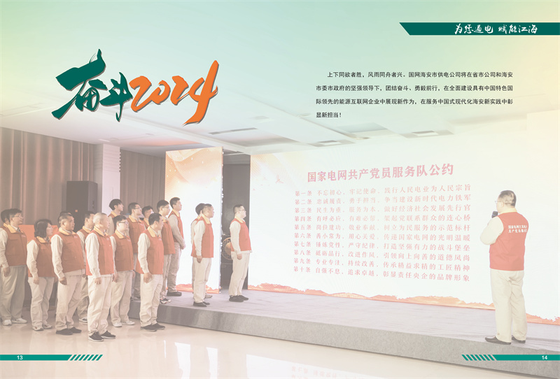 2024年,國(guó)網(wǎng)海安市供電公司將在省市公司和海安市委市政府的堅(jiān)強(qiáng)領(lǐng)導(dǎo)下,踔厲奮發(fā)、篤行不怠,扎實(shí)推進(jìn)各項(xiàng)工作任務(wù),在全面建設(shè)具有中國(guó)特色國(guó)際領(lǐng)先的能源互聯(lián)網(wǎng)企業(yè)中展現(xiàn)新作為,在服務(wù)中國(guó)式現(xiàn)代化海安新實(shí)踐中彰顯新?lián)?dāng)!