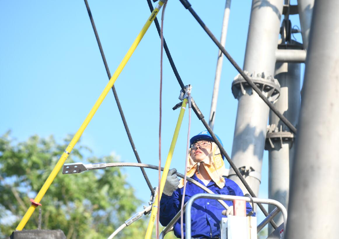 檢修現(xiàn)場,作業(yè)人員頂著烈日展開作業(yè),豆大的汗珠不斷從他們的臉上滾落下來,汗水馬上就濕透了衣衫,他們就脫下來放在車上曬干了繼續(xù)穿。為了防止作業(yè)人員中暑,程勇將現(xiàn)場作業(yè)人員分為兩組,不斷輪替作業(yè),進一步保證檢修任務(wù)順利推進。