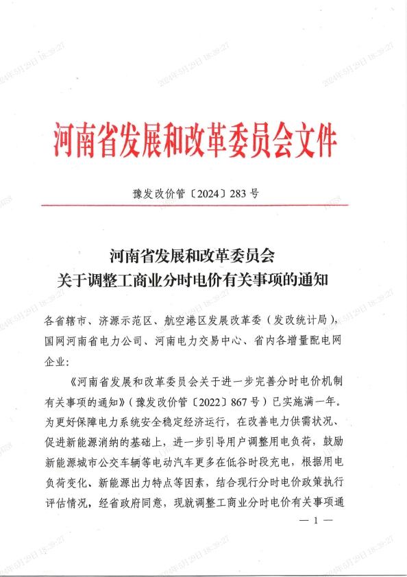 《河南省發(fā)展和改革委員會(huì)關(guān)于進(jìn)一步完善分時(shí)電價(jià)機(jī)制有關(guān)事項(xiàng)的通知》(豫發(fā)改價(jià)管〔2022〕867號(hào))已實(shí)施滿一年。為更好保障電力系統(tǒng)安全穩(wěn)定經(jīng)濟(jì)運(yùn)行,在改善電力供需狀況、促進(jìn)新能源消納的基礎(chǔ)上,進(jìn)一步引導(dǎo)用戶調(diào)整用電負(fù)荷,鼓勵(lì)新能源城市公交車輛等電動(dòng)汽車更多在低谷時(shí)段充電,根據(jù)現(xiàn)行分時(shí)電價(jià)政策執(zhí)行評(píng)估情況,結(jié)合用電負(fù)荷變化、新能源出力特點(diǎn)等因素,現(xiàn)就調(diào)整工商業(yè)分時(shí)電價(jià)有關(guān)事項(xiàng)通知如下: