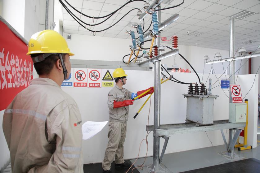 第一項是停送電倒閘操作,評分方式為裁判組打分。參賽選手兩人一組,一人填寫停電操作票、另一人填寫送電操作票,分別擔(dān)任操作人、監(jiān)護(hù)人;安全防護(hù)用品、安全工器具設(shè)置了過期標(biāo)簽,檢驗參賽選手是否能正確使用;實際操作過程中的違章作為扣分項。