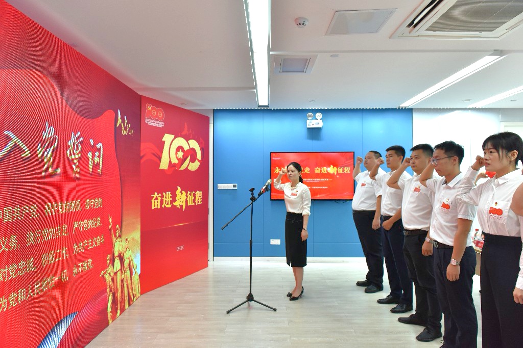 “我志愿加入中國共產黨,擁護黨的綱領,遵守黨的章程……”張宇帶領新黨員宣誓入黨以及全體黨員重溫了入黨誓詞。
