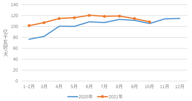 圖3 2020、2021年分月制造業(yè)日均用電量