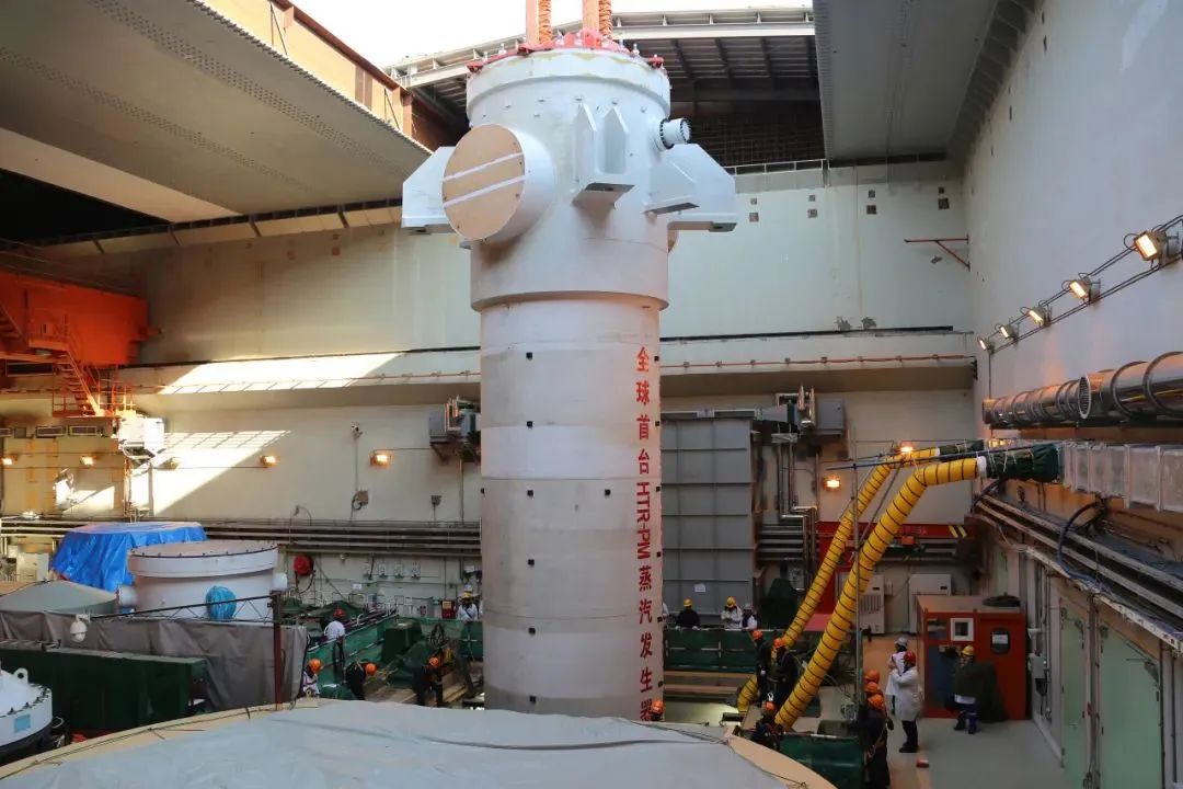 2019年1月27日高溫堆示范工程首臺(tái)蒸汽發(fā)生器吊裝就位