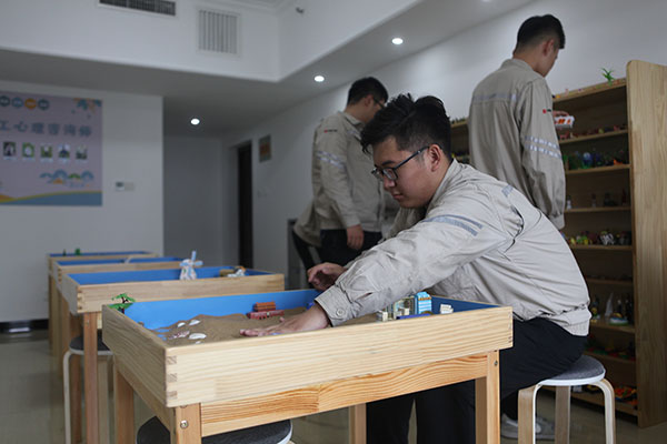 職工是企業(yè)之本,為促進(jìn)新職工之間的人際互動(dòng),普及心理健康知識(shí)水平,增強(qiáng)職工心理健康防護(hù)能力,激發(fā)職工工作的積極性、主動(dòng)性,該公司工會(huì)組織開(kāi)展了沙盤游戲活動(dòng)。在工作人員介紹了沙盤游戲的相關(guān)知識(shí)和規(guī)則后,活動(dòng)正式開(kāi)始。通過(guò)非語(yǔ)言的溝通方式,新職工們構(gòu)造著自我的內(nèi)心世界,有的是回味校園時(shí)光的美好畫面;有的是構(gòu)想未來(lái)的自由悠閑生活畫面;還有的是回歸現(xiàn)實(shí),踏實(shí)學(xué)習(xí)兢兢業(yè)業(yè)工作的畫面.......。短短的兩個(gè)小時(shí),通過(guò)繪制沙盤,體會(huì)到了凝聚與溫暖的力量;通過(guò)分享傾訴,訴說(shuō)出了內(nèi)心的真實(shí)感受;通過(guò)溝通討論,相互汲取智慧。沙盤游戲還教會(huì)了大家如何在平常生活中如何緩解自身心理壓力,培養(yǎng)良好的生活習(xí)慣,進(jìn)一步增強(qiáng)了團(tuán)隊(duì)的凝聚力和向心力。