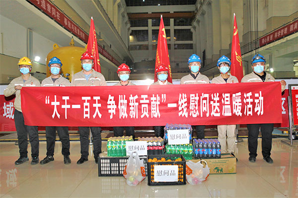 中國電力網(wǎng)訊  為做好“大干一百天、爭作新貢獻”沖刺全年任務(wù)目標(biāo)各項工作和打好能源保供攻堅戰(zhàn),結(jié)合3號機組A級檢修實際,內(nèi)蒙古大唐海勃灣水利樞紐開發(fā)有限公司工會細(xì)致深入做好做實一線慰問和送溫暖工作,夜間趕赴生產(chǎn)現(xiàn)場對生產(chǎn)一線職工進行慰問,將水果、飲料等物品送至職工手中,進一步加強對職工的關(guān)心關(guān)愛。