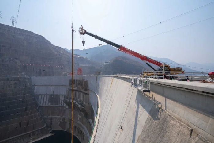 “吊裝這根36.74米芯樣的時候,我們提前跟蹤監(jiān)測了大壩區(qū)域的天氣、風(fēng)速,挑選最合適的吊裝時機,還選了技術(shù)最好的纜機操作手。”據(jù)裴磊回憶,混凝土芯樣吊裝那天,各方參建單位負(fù)責(zé)人守候在大壩現(xiàn)場,所有人的目光都集中在這根世界最長混凝土芯樣上。