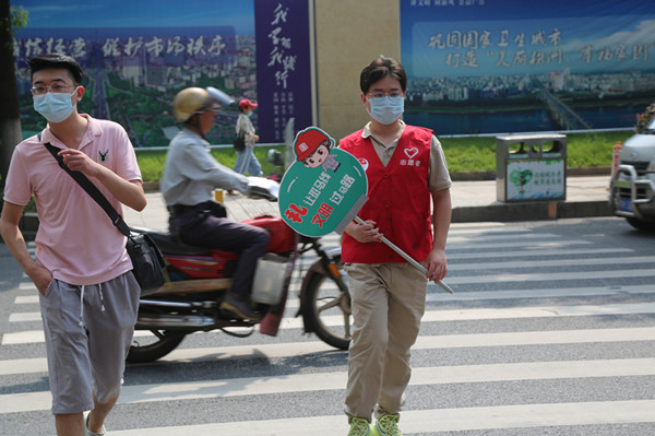 “不亂穿馬路,不翻越交通護(hù)欄。”“文明開車,不得車窗拋物。”“紅燈停、綠燈行,黃燈亮了等一等!”“禮讓斑馬線,文明過馬路。”志愿者們對過往行人不文明行為及時進(jìn)行勸導(dǎo),為株洲文明城市建設(shè)貢獻(xiàn)力量。