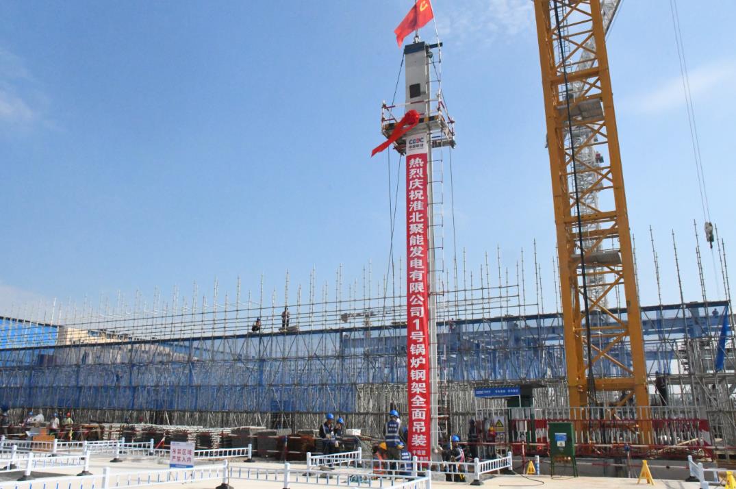 8月1日,中國能建建筑集團承建的淮北國安電廠二期2×660兆瓦超超臨界機組項目1號鍋爐鋼架全面吊裝,標(biāo)志著機組進入安裝階段。