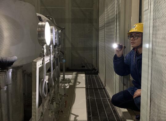 陸友凡正在巡檢設備