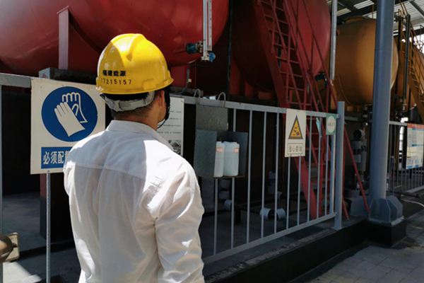 “報告主值,化水區(qū)域設(shè)備運行正常,1號酸罐液位1.6米,2號酸罐液位…… ”化學(xué)巡檢人員正拿著對講機匯報巡檢情況,我們可以從鏡頭上看到,高溫的洗禮下整件衣服都已經(jīng)貼著后背,滿臉大汗就不在話下。