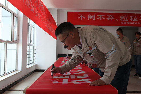 大唐海勃灣水利樞紐公司簽名承諾制止餐飲浪費(fèi)