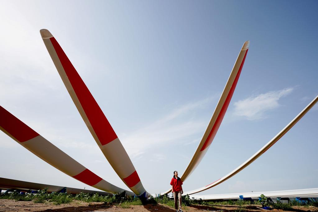 6月30日,河北省威縣一家風(fēng)電機(jī)組葉片制造企業(yè)工人對大型風(fēng)電機(jī)組葉片進(jìn)行外觀檢測。新華社記者 駱學(xué)峰 攝