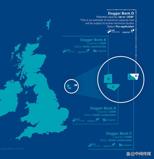 Dogger Bank,全球最大的在建海上風電場,正在進行令人矚目的第四期場址建設擴張,名為Dogger Bank D。此項擴建計劃意味著將安裝更多的風機和海上平臺,總容量將達到5.6GW,這將進一步推動全球可再生能源的發(fā)展,同時也為歐洲各國提供了新的電力供應解決方案。