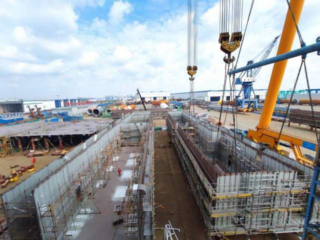 如東海上換流站包含基礎(chǔ)樁、導(dǎo)管架、上部模塊3大部分,其建造規(guī)模約為常規(guī)220千伏海上升壓站的7-8倍。換流站的上部模塊為七層建筑,平面尺寸約為84米×94米,相當(dāng)于一個(gè)足球場大小,高約44米,總重約20000噸。
