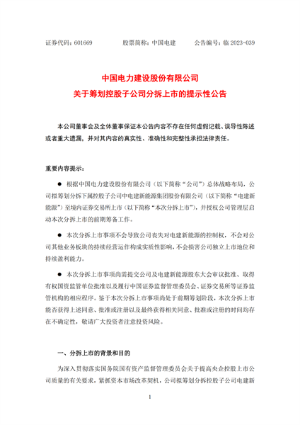 重磅!中國(guó)電建擬分拆新能源業(yè)務(wù)獨(dú)立上市!