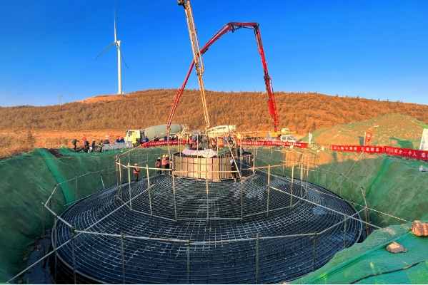 在河南省嵩縣項目建設(shè)現(xiàn)場,一派熱火朝天的施工景象。嚴寒天氣中,中國節(jié)能首個產(chǎn)業(yè)助力鄉(xiāng)村振興重點項目——中節(jié)能嵩縣九皋鎮(zhèn)風電場項目工程現(xiàn)場塔吊林立,運輸車輛往來穿梭,基礎(chǔ)澆筑井然有序,以一個個風機基礎(chǔ)構(gòu)成的“同心圓”應了農(nóng)歷新年“和美團圓”之意。