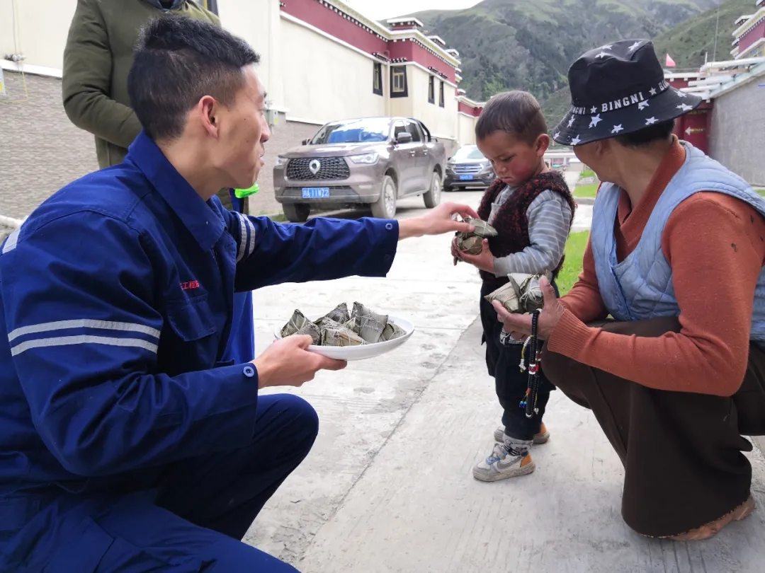 端午節(jié)恰遇蟲草季,青年人都已上山挖蟲草,那曲JD項(xiàng)目部堅(jiān)持把黨史學(xué)習(xí)教育與我為群眾辦實(shí)事結(jié)合起來,為駐地留守老人、兒童送關(guān)懷,送上暖心“粽”,收到粽子的老人笑著說:“感謝中國安能,突及其(謝謝)!”
