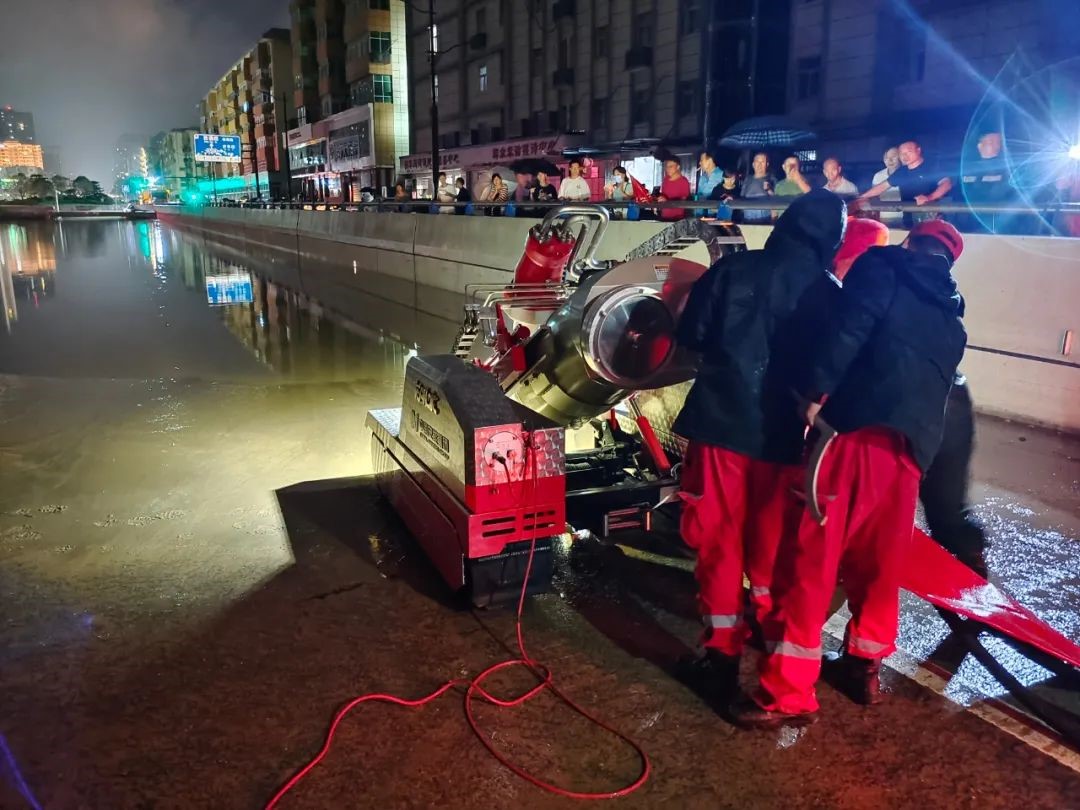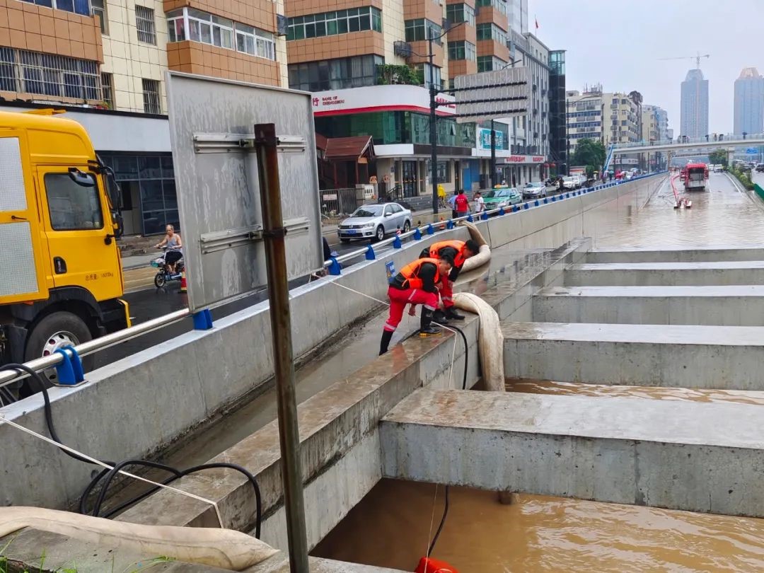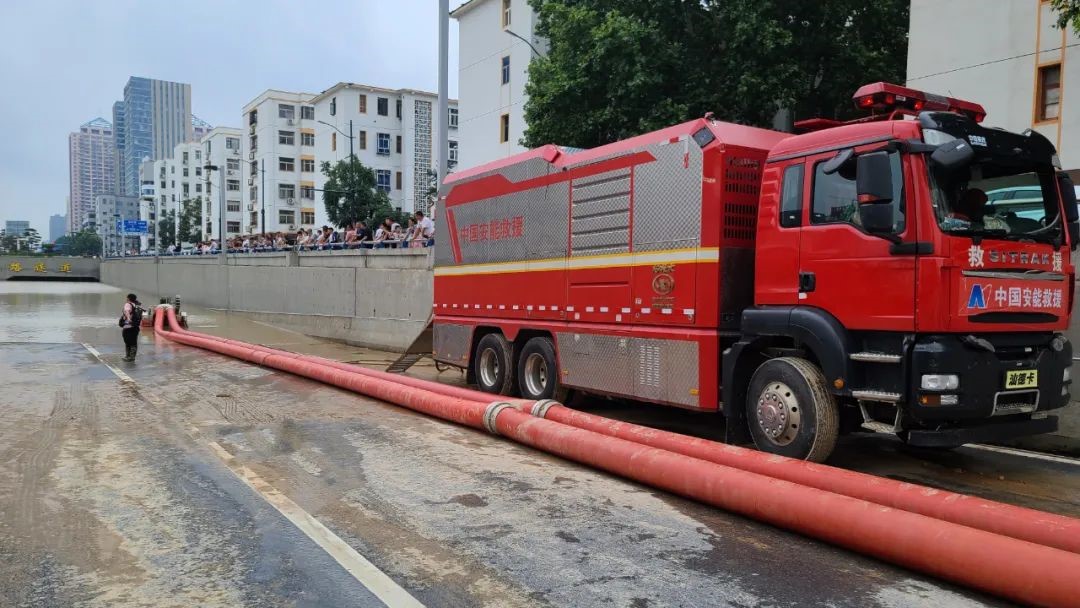 鄭州方向,安能三局派出25人,4臺龍吸水,2臺一體化泵車,在京廣北路隧道由北往南展開抽排水。針對鄭州站西廣場積水嚴(yán)重情況,中國安能三局采取“人歇機不停、兩班連續(xù)戰(zhàn)”的戰(zhàn)法,截止22日12時00分,完成抽排水26萬方,水位下降約3.5米,已經(jīng)大幅度下降,西北側(cè)隧道道路面露出約60米。因下半夜抽排現(xiàn)場連續(xù)強降雨,抽排水仍在緊張工作中。在抽排水現(xiàn)場,全體抽排水指戰(zhàn)員白天冒高溫、晚上頂濕冷,沒有一人叫苦叫累,他們團(tuán)結(jié)協(xié)作,有序有力奮戰(zhàn)在抽排水一線。