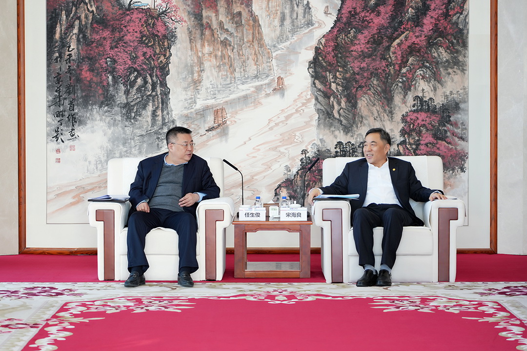 宋海良對任生俊一行的到來表示歡迎,對中國進(jìn)出口銀行長期以來給予中國能建的關(guān)心、幫助和支持表示感謝,并簡要介紹了中國能建改革發(fā)展情況和業(yè)務(wù)優(yōu)勢。他表示,當(dāng)前中國能建正深入落實(shí)“四個(gè)革命、一個(gè)合作”能源安全新戰(zhàn)略,充分發(fā)揮能源電力全產(chǎn)業(yè)鏈一體化與核心技術(shù)優(yōu)勢,緊緊圍繞“創(chuàng)新、綠色、數(shù)智、融合”核心發(fā)展理念,加快推動“四大轉(zhuǎn)型”,系統(tǒng)構(gòu)建新能源、新基建、新產(chǎn)業(yè)、新材料“四新”能建平臺。近年來,公司堅(jiān)持國際業(yè)務(wù)優(yōu)先優(yōu)質(zhì)協(xié)同發(fā)展,構(gòu)建“一體兩翼”海外發(fā)展體系,勇當(dāng)高質(zhì)量共建“一帶一路”的主力軍、排頭兵、先鋒隊(duì),取得豐碩成果。中國進(jìn)出口銀行是我國外經(jīng)貿(mào)支持體系的重要力量和金融體系的重要組成部分,中國能建主營業(yè)務(wù)、全球布局與中國進(jìn)出口銀行支持區(qū)域領(lǐng)域高度契合,希望雙方在國際業(yè)務(wù)、跨境咨詢服務(wù)、戰(zhàn)略性新興產(chǎn)業(yè)、綠色金融產(chǎn)品等重點(diǎn)業(yè)務(wù)領(lǐng)域深化務(wù)實(shí)合作,全面加強(qiáng)重點(diǎn)區(qū)域、重點(diǎn)行業(yè)、重點(diǎn)項(xiàng)目合作,進(jìn)一步探索金融合作模式與金融產(chǎn)品創(chuàng)新,提升雙方合作的前瞻性、針對性,攜手培育新質(zhì)生產(chǎn)力,扎實(shí)推動高質(zhì)量發(fā)展。