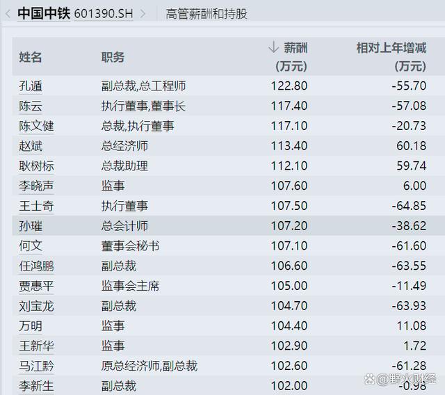 年報還披露,中鐵股份高管收入基本都超過百萬元,最高是副總裁兼總工程師孔遁,122萬元,董事長和總裁薪酬117萬元,監(jiān)事會主席薪酬105萬元。并有6位高管持有20多萬股至40萬股股份。