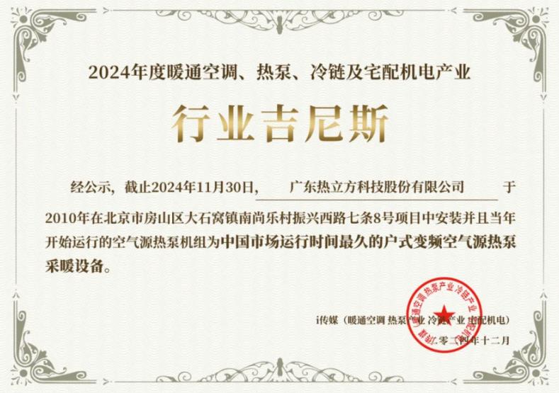 熱泵行業(yè)媒體i傳媒近日向熱立方地暖機頒發(fā)了一項榮譽——中國市場運行時間最久的戶式變頻空氣源熱泵采暖設(shè)備。據(jù)了解,該設(shè)備于2010年在北京市房山區(qū)大石窩鎮(zhèn)南尚樂村振興西路七條8號項目中安裝,并且當(dāng)年開始運行,歷經(jīng)15個供暖季后,依然穩(wěn)定運行無故障,創(chuàng)造了中國市場運行時長的行業(yè)紀(jì)錄。該項檢測由“建筑環(huán)能科技有限公司建筑環(huán)境與能源檢測院”完成檢測認證。