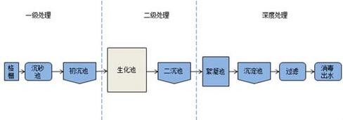 按處理深度通??蓪?span id="e0kjryc7cg" class="hrefStyle">污水處理分為一級處理、二級處理和深度處理。一級處理的主要目的是去除懸浮狀態(tài)固體,常采用物理法,對于BOD5的去除率一般在20%~30%;二級處理的目的是進一步去除污水中膠體和溶解性污染物,常使用生物法,BOD5的去除率在90%以上;深度處理以達到更高的處理與排放要求或污水回用為目的。膜法技術(shù)通常用于處理二級處理活性污泥出水,或者將膜處理系統(tǒng)直接臵于生化池,代替原有二沉池、絮凝沉淀池等環(huán)節(jié)。使用膜法技術(shù)改造之后,傳統(tǒng)污水處理工藝可以直接生產(chǎn)出高品質(zhì)再生水。