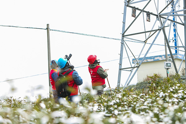 “寧海雙峰片區(qū)供電線路的地理位置在寧海是海拔較高的,每次寒潮來襲,輸電線路容易出現(xiàn)覆冰,會(huì)威脅線路正常運(yùn)行。要不是這寒潮,我們現(xiàn)在都使用無人機(jī)巡視了,天氣冷,能見度低,風(fēng)又大,對(duì)無人機(jī)正常巡視帶來極大的干擾。”國家電網(wǎng)浙江電力(寧海)紅船共產(chǎn)黨員服務(wù)隊(duì)輸電線路分隊(duì)隊(duì)長朱勇一邊向記者介紹,一邊開始和隊(duì)友巡視鐵塔覆冰情況。有著多年巡線、觀冰經(jīng)驗(yàn)的他雙手托舉紅外線測溫裝置,將紅外裝置鏡頭對(duì)準(zhǔn)鐵塔、導(dǎo)線等,采集風(fēng)力、溫度、覆冰厚度等基礎(chǔ)數(shù)據(jù),接著又對(duì)線路走廊及覆冰情況進(jìn)行巡視。