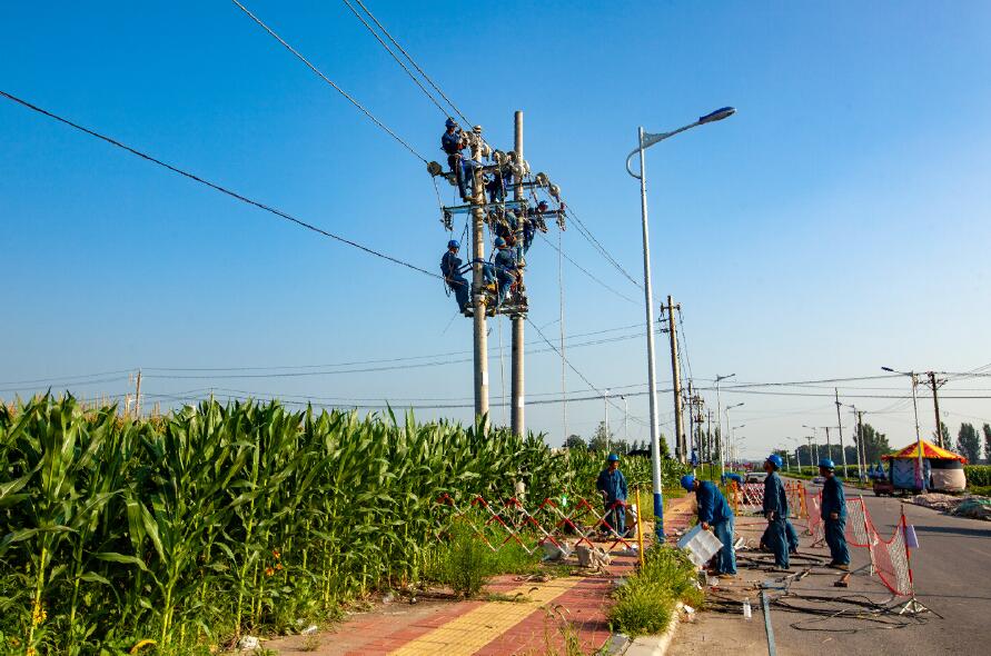 8月4日,在河南滑縣留固鎮(zhèn)南街村玉米田里,10千伏留賈線路升級改造現(xiàn)場,趙瑞杰、張連青等15名電力工人正在加緊作業(yè),爭取盡早完成工作任務(wù),為附近村民生產(chǎn)生活用電提供堅(jiān)強(qiáng)電力能源保障,確保“清涼”度夏。