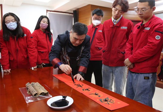 活動中不僅觀看了書法大家揮灑自如、展示書法魅力的書寫,還激發(fā)了職工學(xué)習(xí)書法的熱情。宋永江主席隨即在現(xiàn)場進行了書法傳授,用四句話講述了書法要點:分割均勻、舉一反三、學(xué)會分析、穿插移正。精準(zhǔn)的教授,讓現(xiàn)場的青工們躍躍欲試。大家聚精會神地欣賞著剛寫好的春聯(lián),有的還跟著讀了出來。參加活動的書法愛好者劉亭汝說“春節(jié)是我們的傳統(tǒng)節(jié)日,貼對聯(lián)是象征吉祥,表達(dá)人們對美好生活的向往,很高興能為我們基層職工帶來這樣一份有意義的新春祝福。”新入職員工也表示宋主席的書法飄若浮云,矯若驚龍,字里行間流露出對單位員工真切的祝福,讓我們心里暖暖的。