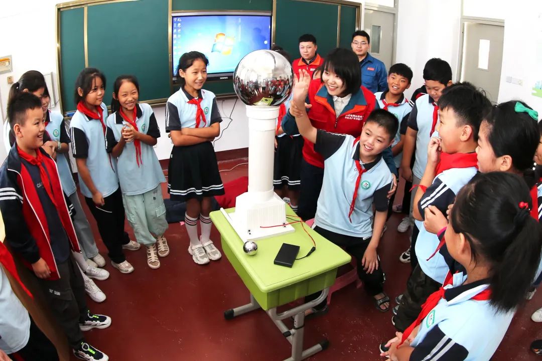 國(guó)網(wǎng)山東棗莊供電公司志愿者在薛城夏莊小學(xué)電力愛心教室,與學(xué)生一起做用電小實(shí)驗(yàn)