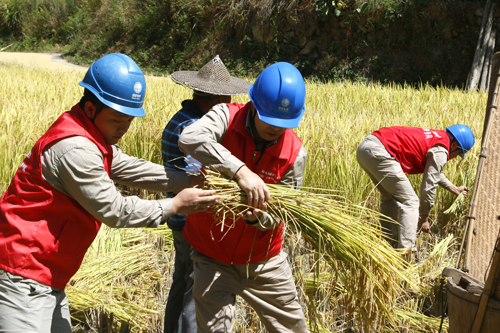 本網(wǎng)訊 秋高氣爽,稻穗飄香,秋收正當(dāng)時(shí)。為確保廣大農(nóng)戶秋收期間用電無(wú)憂,9月20日,國(guó)網(wǎng)福建電力“雙滿意”(浦城)共產(chǎn)黨員服務(wù)隊(duì)走進(jìn)革命老區(qū)浦城縣楓溪鄉(xiāng)岱后村的田間地頭,為農(nóng)戶提供用電技術(shù)指導(dǎo),宣傳安全用電常識(shí),發(fā)放安全用電宣傳資料,并在相關(guān)電力設(shè)施上懸掛警示標(biāo)志,防止農(nóng)機(jī)車輛誤碰誤掛帶電設(shè)施等引發(fā)外破事故發(fā)生,保障秋收期間農(nóng)村用電安全。