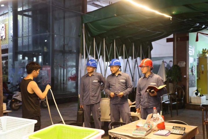 南方電網(wǎng)工作人員檢查夜市小商戶線路。