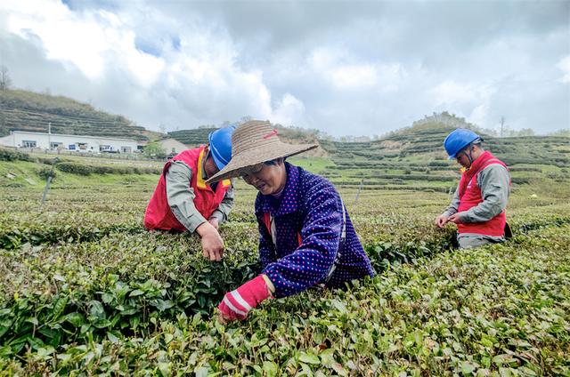 供電人員宣傳用電知識(shí)的間隙與茶農(nóng)一起采茶。豐俊攝