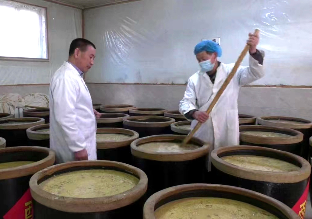 中共二十大代表、隆德縣鳳嶺鄉(xiāng)李士村黨支部書記齊永新(左一)在鳳河醋場