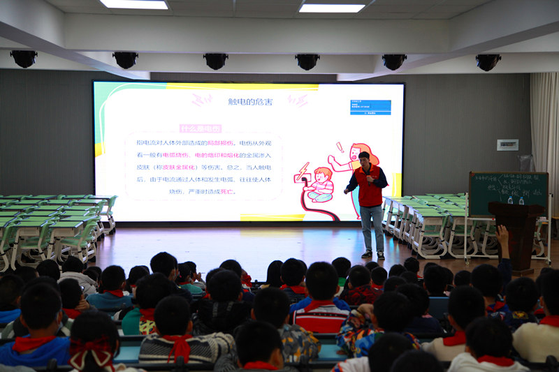 課堂上,該公司黨員服務(wù)隊隊員雷盧鈞從觸電的危害、觸電的方式、安全用電與預(yù)防措施、觸電急救等四個方面進(jìn)行生動形象的講解,并通過有獎問答的方式與孩子們一同回顧了“生活用電小常識”、“錯誤用電的危害”等知識,孩子們紛紛舉手搶答,課堂氣氛反應(yīng)十分熱烈。