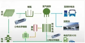 利用清潔能源電力電解技術(shù)得到氫氣,將氫氣存儲于高效儲氫裝置中,再利用燃料電池技術(shù),將存儲的能量回饋到電網(wǎng),或者將存儲的高純度氫氣送入氫產(chǎn)業(yè)鏈直接利用。