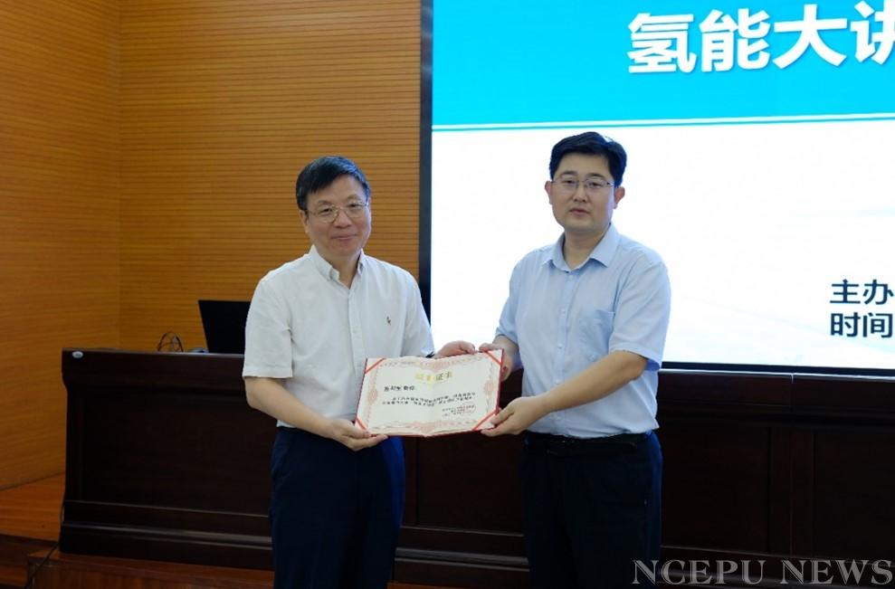 論壇伊始,張磊向蔣利軍頒發(fā)了“氫能大講堂”第二期主旨報告榮譽聘書。