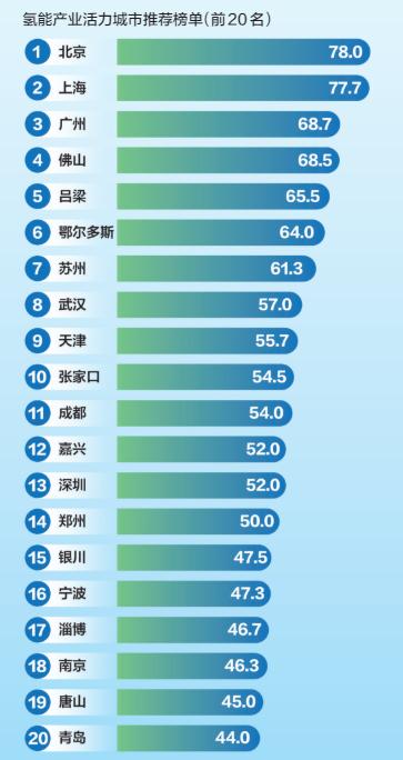 基于全國氫能產(chǎn)業(yè)發(fā)展的地區(qū)分布特點(diǎn) ,新京報(bào)零碳研究院對主要城市的氫能資源稟賦 、政策環(huán)境 、產(chǎn)業(yè)規(guī)模 、項(xiàng)目投資 、基礎(chǔ)設(shè)施和企業(yè)數(shù)量等維度數(shù)據(jù)進(jìn)行了量化和綜合評(píng)價(jià) ,篩選出了全國20個(gè)氫能產(chǎn)業(yè)發(fā)展活力城市 。具體城市名單如下: