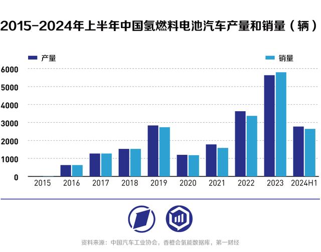 相比之下,中國市場逆勢增長,繼續(xù)保持全球燃料電池車產銷第一的地位。根據(jù)中國汽車工業(yè)協(xié)會數(shù)據(jù),2024年上半年全國氫燃料電池汽車產銷數(shù)據(jù)分別為2773輛和2644輛,同比增加11.1%和9.7%,均位列世界第一。